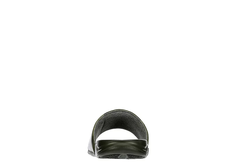You’ve got all day to chill in this sporty Mega men’s slide from Champion. With a faux leather upper featuring a brushed fabric lining for a nice feel, this slide also has the classic Champion logo for a stylish look. The contoured foam footbed comforts while the traction sole has great grip for excellent wear.