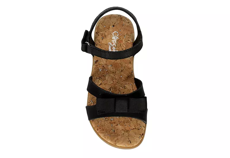 Dress her with easy style in the Cupcake Couture Lil Bow infant girls’ sandal. With a strappy faux leather upper featuring an adorable bow detail, this hook & loop strap sandal goes with everything for easy summer packing. The cork-like footbed adds a modern touch and comfort.