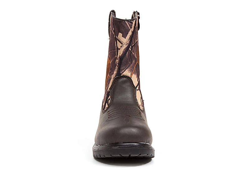 Let him be a little bit country and then double down with the Deer Stags Tour boys’ Western boot. With a faux leather & fabric upper featuring a camo print for rugged style, these inside zip boots are waterproof so he can be a little wild without too much of a mess. The cushioned insole and durable outsole support his feet while cutting down on wear.