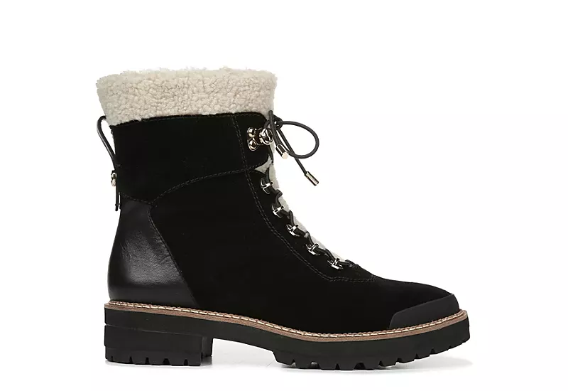Waterproof your winter style with the Franco Sarto Rosella women’s combat boot. Featuring a faux suede & faux leather upper with a faux fur trim for extra warmth, this inside zip bootie also has a stylish hiker-inspired lace-up front.The unique eyelets set their own trend while lug outsole offers deep traction.