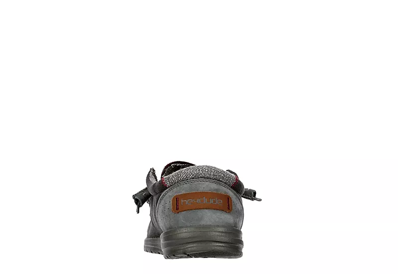 Relax into your passion with the HEYDUDE Wally Corduroy men’s slip-on sneaker. With a corduroy upper featuring a suede heel counter and contrast detailing for extra style, this sneaker has elastic laces for a secure fit. The breathable wool-blend lining regulates heat and moisture while the ultralight EVA outsole sets you free to explore unfettered.